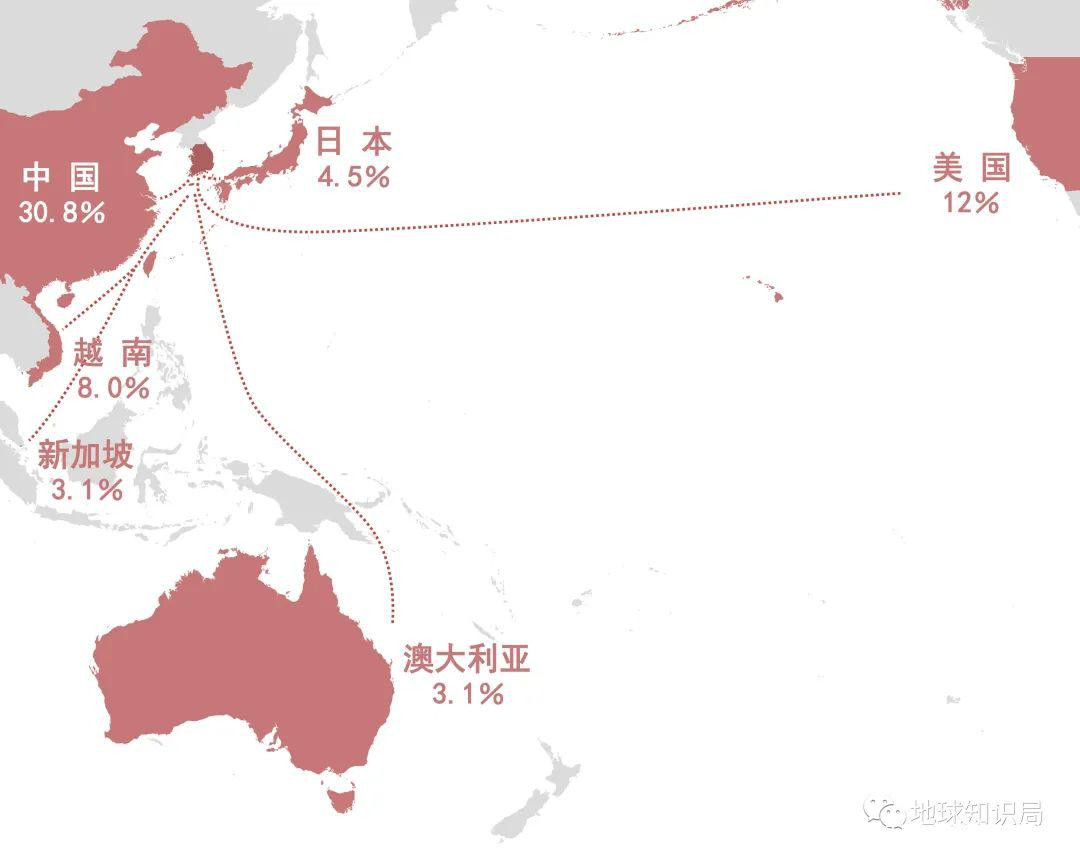 ▲ 不過韓國幾個最大的出口目的地國家都在太平洋沿岸