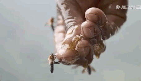 用煙火燻蜂巢時,臉上胳膊上腿肚子上,都會爬滿蜜蜂。