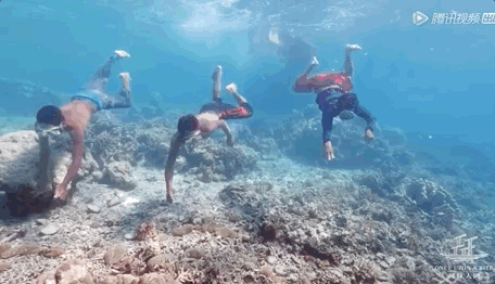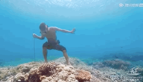 水性最好的小夥,只需帶着護目鏡,就能一口氣憋着,直直潛入海底。