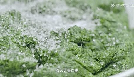 綠色蔬菜剁碎,把多餘的水分擠掉,撒入白糖。