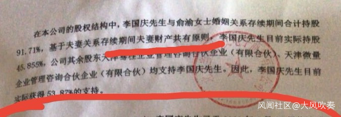 **(2)李國慶召開股東會和做出決議的依據。**李國慶之所以認為他有權召開且合法有效的做出股東會決議,其邏輯是:俞渝和他的股權都是夫妻共同財產,因此他的股權是(64.2%+27.51%)/2=45.86%,然後加上支持他的小股東的股權,就過半數了。