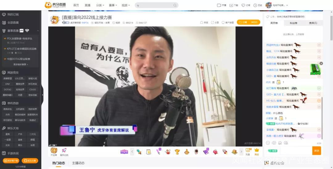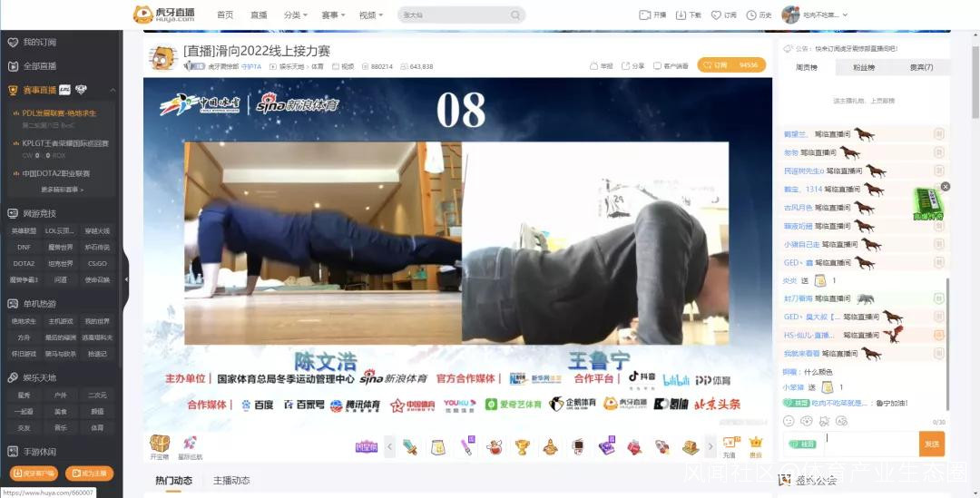 此後,虎牙體育首席解説王魯寧還和陳文浩進行了線上體能大比拼,二人俯卧撐的線上直接較量也掀起了本場活動的小高潮。