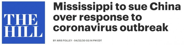 為甩鍋中國,繼美國密蘇里州之後,密西西比州也於4月22日加入到起訴中國的行列,為這出政治鬧劇增添一些無聊的情節。預料美國共和黨控制的一些州還會陸續加入其中,以呼應所謂“要中國為新冠疫情承擔責任”的説法。