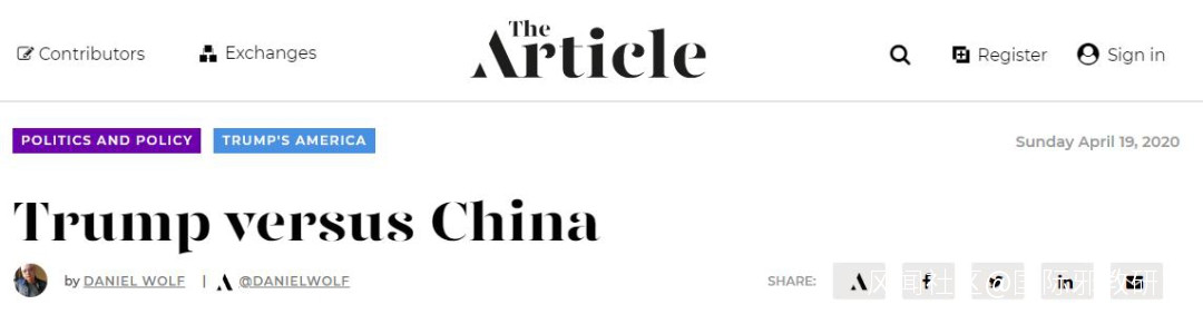 4月19日,英國著名紀錄片製片人、自由記者丹尼爾·沃爾夫在專注記者行業的自媒體網站“文章網”發表深度評論文章《特朗普VS中國》(Trump versus China)。文章從“法輪功”邪教喉舌“大紀元時報”發佈的視頻説開,認為這部所謂紀錄片是“法輪功”在帶節奏,使得“一眾偏執狂如此罔顧事實”。文章指出,針對中國產生的一系列陰謀論,“都是未經證實的,難以服眾,是一些人的癲狂之語”。