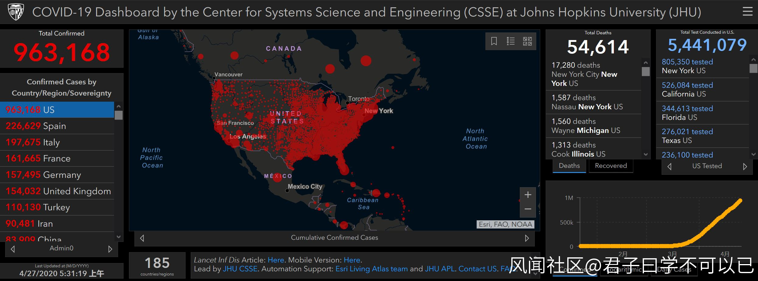 4/27日,美國新冠患者已經96萬餘例,死亡5萬4千餘人,位列世界第一。在各大網站已經有人據此論述美國的衰亡,但是我想提醒的是:一個國家的興衰其實並不是以死亡的人數來決定的,甚至不是抵抗疫情來表現的,而是根據本國特定的國情來定。