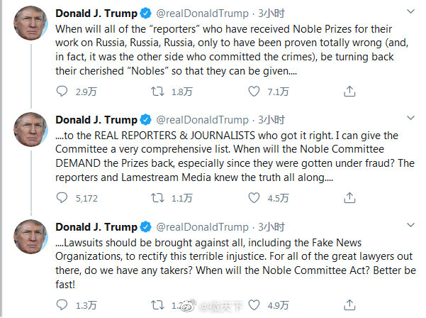 什麼時候,那些因為通俄門報道而獲得“諾貝爾獎”的“記者們”,才會被證明是完全錯誤的(事實上,是對方犯下了罪行),把他們最珍愛的“諾貝爾獎”還回去,發給真正的記者?