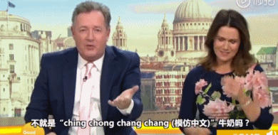 今年1月英國女王的長孫彼得·菲利普斯在中國拍攝牛奶廣告賺錢。摩根在節目中模仿廣告用語並嘲笑中文發音,引來種族主義行為的批評。