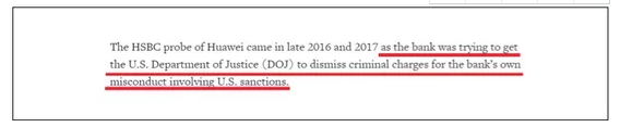事實上,滙豐提交給美國司法機構的所謂“關鍵證據”,不過是孟晚舟2013年向滙豐展示的一份演示文檔(PPT)——她用這份PPT向滙豐的一位高管當面溝通,以證明華為在涉及伊朗的業務中,沒有任何違規的行為。路透社報道更清晰,華為公司於2012年和2013年時曾被路透社報道過他們與一家伊朗合作伙伴的業務與關係。當時華為除了對媒體澄清了這些事情,也與合作伙伴進行了溝通和澄清。路透社稱,滙豐之後也確實沒有再因其所涉及的其他案件而被美國政府起訴。這就是滙豐利用手頭掌握的客户信息,服務他國與自身利益的經典一例,也是嚴重損害中國國家安全和金融安全的最佳案例。
