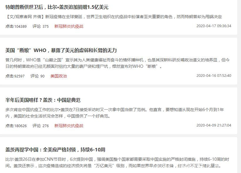 兩人在此次疫情中的表現,我在觀網分別用他們的名字做了一個搜索,由於某一方出鏡次數太多,內容又過於雷同重複,所以各取三張截圖如下。