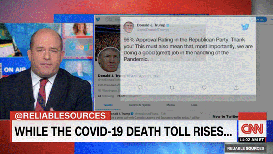 【海外網4月28日|戰疫全時區】 當地時間27日,美國有線電視新聞網(CNN)在其網站首頁播放了一條時長近7分鐘的視頻,CNN主播布萊恩·史特勒(Brian Stelter)在視頻中指出,在美國新冠肺炎死亡病例數不斷攀升的情況下,白宮團隊還多次宣稱美國疫情得到控制,甚至將疫情當做黨派鬥爭的工具,類似的誤導性信息對美國國內抗疫起到了反作用。