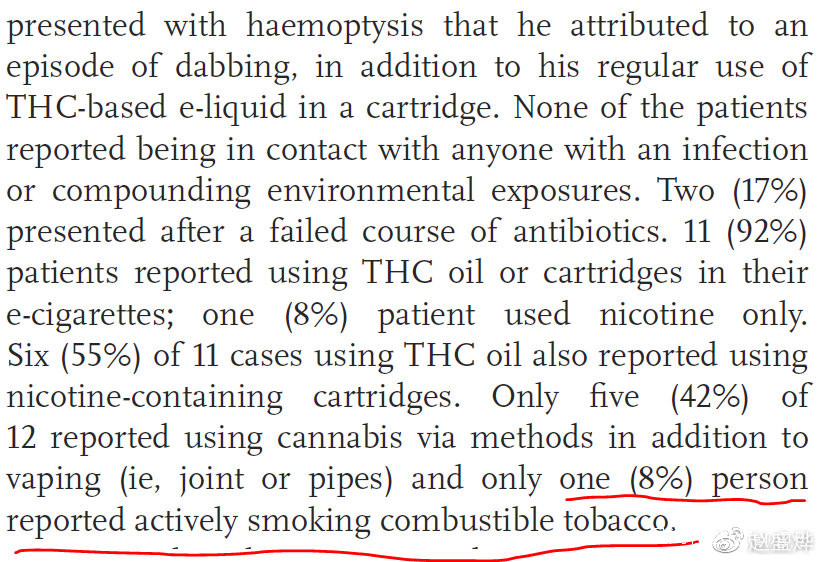 第四,“電子煙肺炎”病例當中有人不吸電子煙;