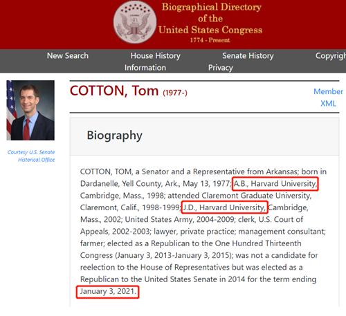 剛去美國政府網站查了下,這老哥在參議院的任期明年1月3號到期。看來是為了下輪選舉爭取反華派的支持,才這麼上躥下跳、搞出這些“智熄”的言論。
