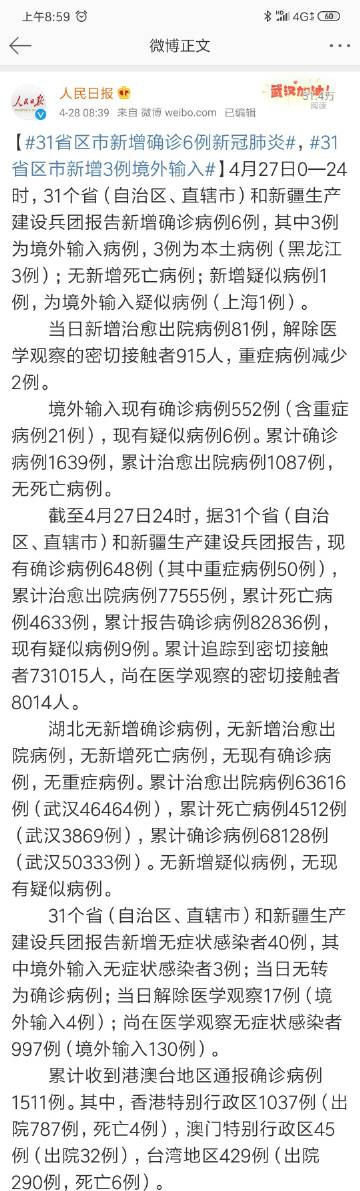 3. 湖北數據全是“無”。對湖北的數據跟蹤也結束了,定格在累計68128例確診,4512例死亡,湖北死亡率6.62%。