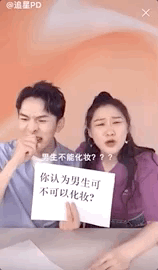 那……趕緊下一個話題:“你覺得男生可以化妝嗎”。
