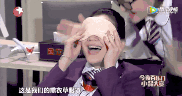“乘客,你吃飽了肯定困了吧,這是我們的薰衣草眼罩”
