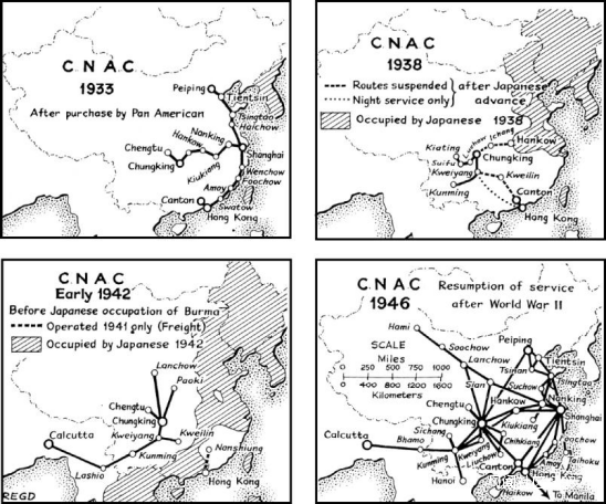 1933年,泛美航空公司收購了柯蒂斯-賴特公司的中國子公司。當日本侵略中國時,該航空公司被迫遷往重慶,並在第二次世界大戰期間,從那裏開始提供飛越喜馬拉雅山 “駝峯 “飛往印度的基本服務。