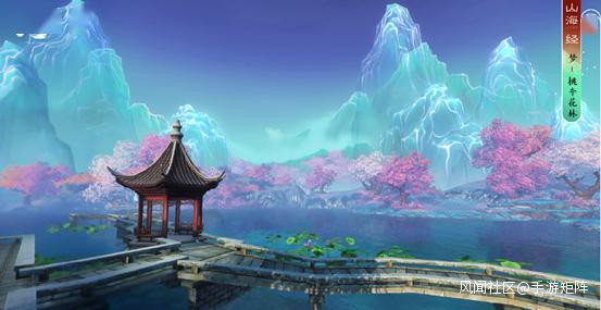而在場景美術方面,新資料片更新了多個磅礴大氣的地圖場景:比如結合時光回溯的劇情,重現了大禹女嬌成婚時的桃李花林;新的副本戰鬥也在場景與BOSS設計上,緊緊圍繞山海異獸這一主題。