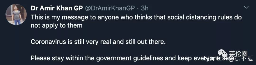 這是我對於那些認為社交疏離規則不適用於他們的人的訊息,新冠病毒仍然在肆虐,請遵守政府的規定,保證所有人的安全。