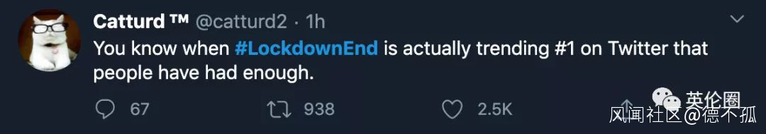 有一些網友在推特上已經將#lockdownend(封禁解除)的標籤頂上了熱搜——