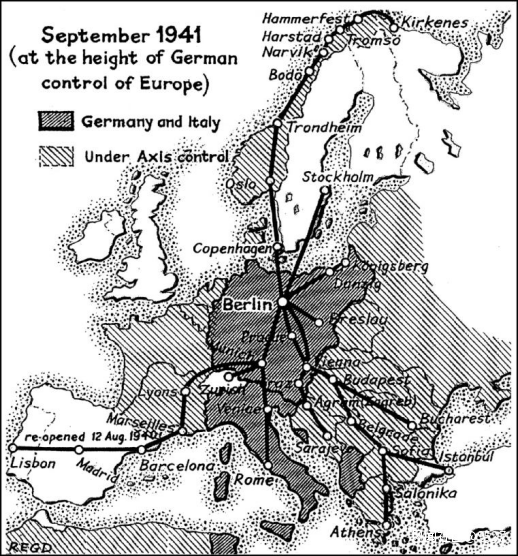 1939年9月3日,當世界準備鞏固一個相互聯繫的航空系統時,各國分裂成戰爭派別,遠遠超出了歐洲的範圍。到了1941年,歐洲已被柏林-羅馬軸心國控制,英國岌岌可危地堅持獨立於法西斯統治之外。瑞典、瑞士、愛爾蘭和葡萄牙保持着不穩定的中立,里斯本是交戰國之間的聯絡區。在戰爭時期,愛爾蘭在福伊恩的飛艇基地是世界的空中十字路口。南美洲幾乎沒有受到戰爭的影響,航空運輸在那裏取得了進展;但即便如此,德國人的擴張野心還是受到了挫折。