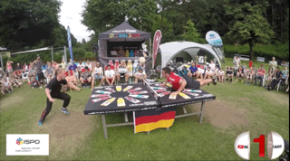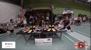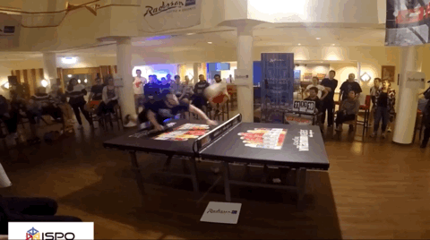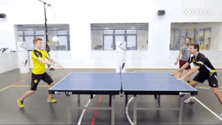 在比賽中,你經常能看到他們提前預判對手的進攻意圖,直接躥到桌上完成截殺,然後轉身給觀眾秀上一段熱舞↓