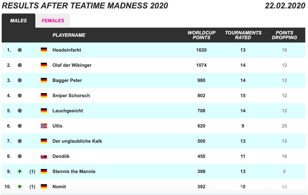 只要是參加過比賽的選手,都能在官網上查到自己的積分排名
