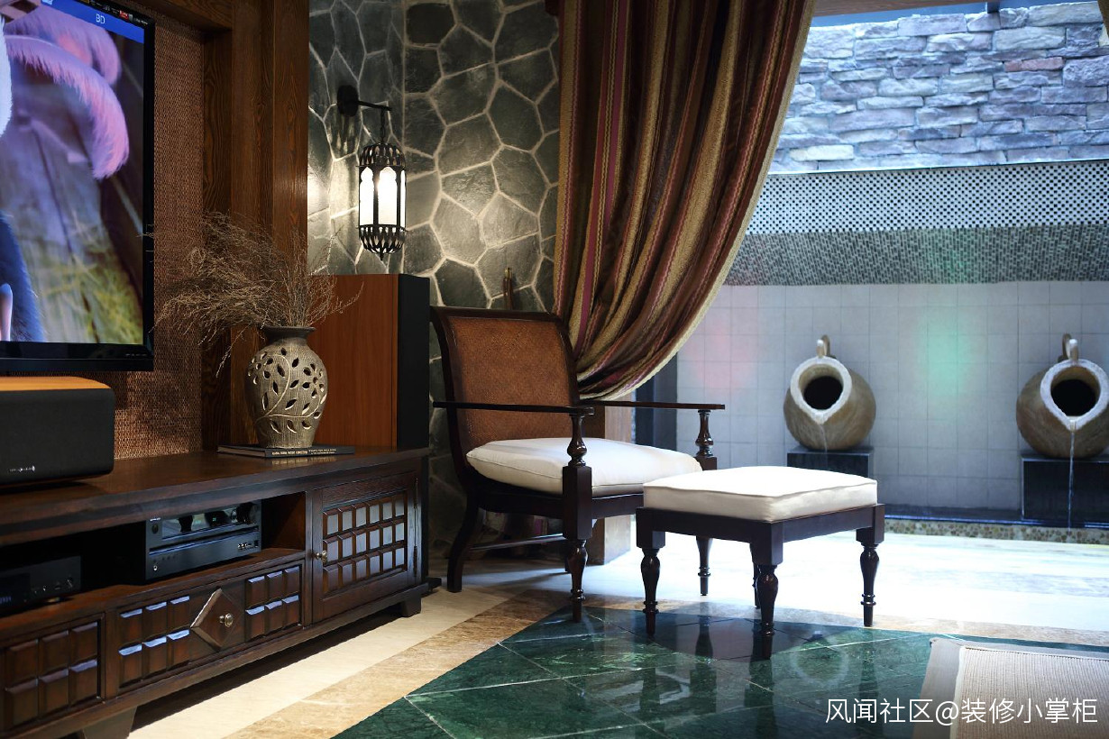 如果你對這塊休閒區域使用頻率比較高,或者願意把這裏當做個小會客區,那麼可以利用一面牆或拐角打造一排卡座。在新房裝修設計中,卡座對空間利用率高,同樣大小的地方可以比擺座椅多坐一倍的人,很適合朋友聚會。下面可以做成儲物箱,收納空間也增加了。