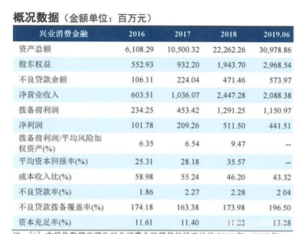 截至2016年、2017年、2018年、2019年6月末和2019年末,興業消費金融的貸款餘額分別為57.14億元、98.70億元、206.94億元、281.82億元和342.60億元。截至2019年11月底,興業消費金融累計發放消費貸款900億元,累計服務客户超過880萬户。