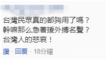 還有網友質疑,“台灣民眾真的都夠用了嗎?幹嘛那麼急着援外搏名聲?台灣人的悲哀!”