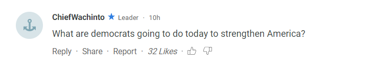 “民主黨今天又會為增強美國做什麼呢?”(筆者:我知道你們都挺川,但是你這條好像文不對題吧…)