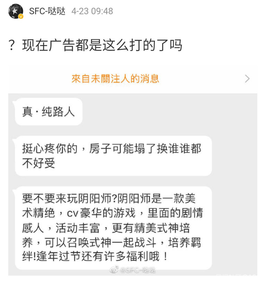 前幾天羅志祥超話的大粉就收到了這樣的安利。雖然在動漫與遊戲方面,紙片人不易翻車的優勢,的確會將“塌房”的風險最小化。但很顯然,這樣帶貨主播式的強行推薦,並不是一項好的選擇,可能還會收穫反效果。