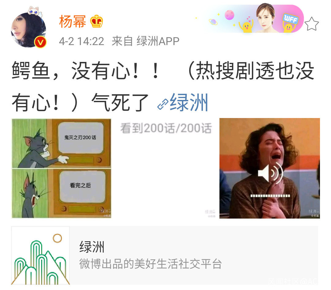 俗話説“百聞不如一見”,安利聽得再多,也比不上親自感受作品氛圍來得“上頭”。伴隨着楊冪那句“鱷魚,沒有心!”登上熱搜,粉絲們紛紛響應補起了《鬼滅之刃》。
