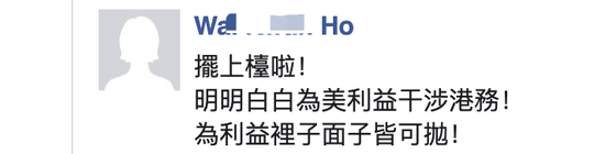 不少香港網友留言表示,“香港立法關美國什麼事?”“(蓬佩奧)明明白白為美國利益干涉香港事務,為了利益裏子面子皆可拋!”