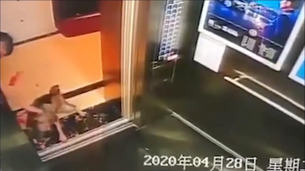 哈士奇一直在扒着地板,抗拒被推入電梯,但是無濟於事。等到被完全推入電梯時,男子快速地按下樓層數,電梯門徐徐關上,獨留哈士奇待在電梯裏。