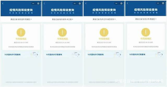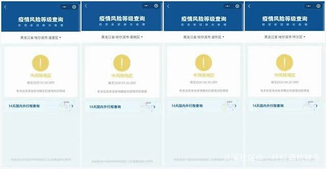 黑龍江省哈爾濱市道里區、南崗區、道外區、呼蘭區、阿城區、木蘭縣,牡丹江市綏芬河市、西安區屬於中風險地區。