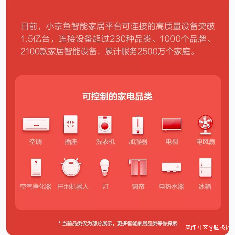 目前,小京魚智能家居平台連接的設備突破1.5億台,品類超230種,品牌1000多個,也就是説,只需要用户一句話,就能完成空調、淨化器、加濕器、燈泡、插座等場景的互通互聯,將強大的京東服務能力端到端地輸送到用户面前。