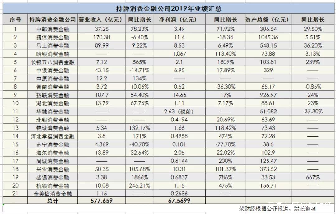 據柒財經旗下柒聞網統計,截至4月30日,已經有21家持牌消費金融公司公佈2019年財務業績。