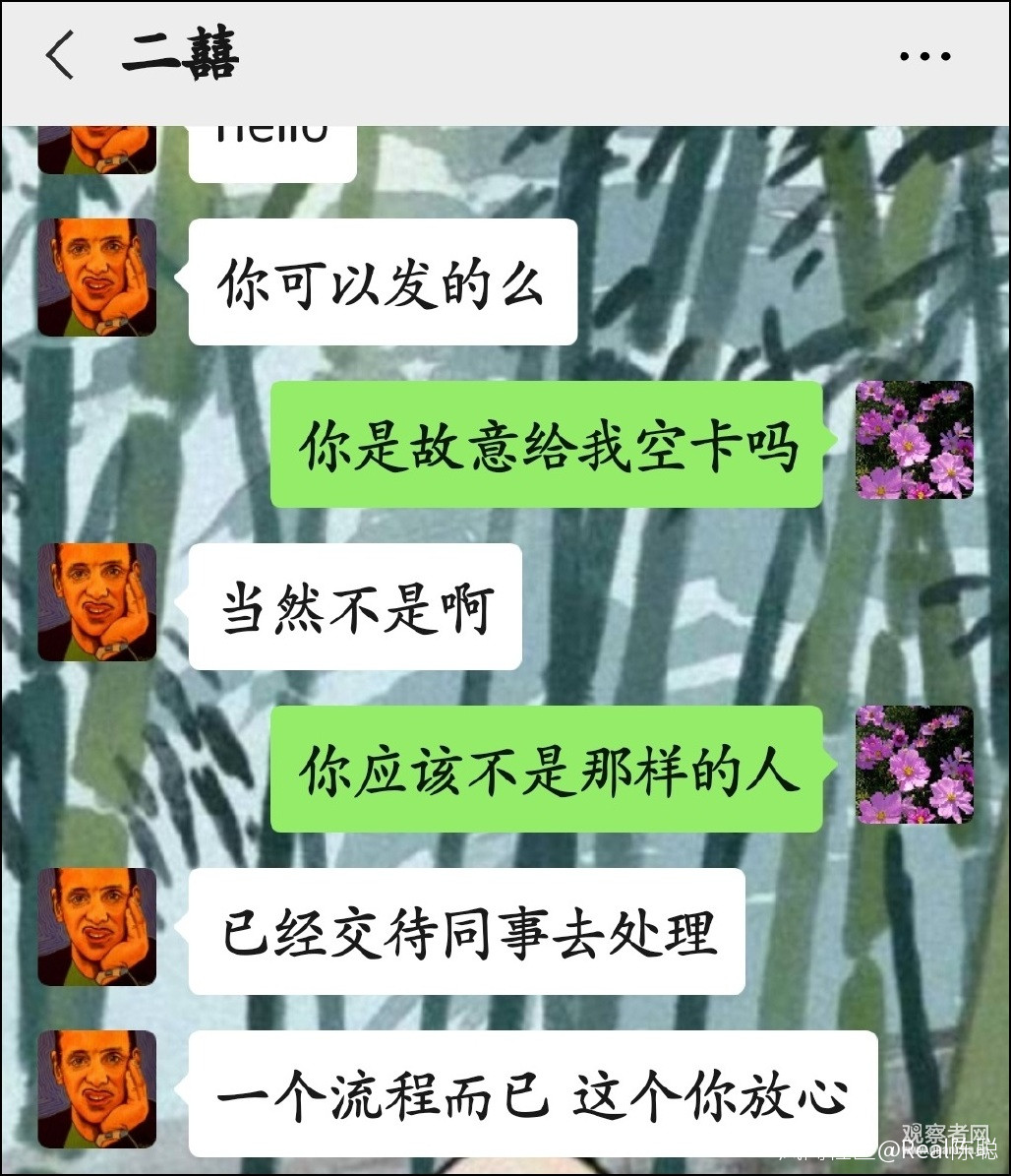 再去追究時,劉二囍才回復她説是操作失誤,導致賠償空卡的情況發生。