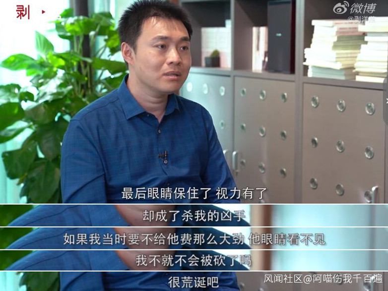 “最後眼睛保住了,視力有了,卻成了殺我的兇手,如果我當時要不給他費那麼大勁,他眼睛看不見,我不就不會被砍了嗎?很荒誕吧。”