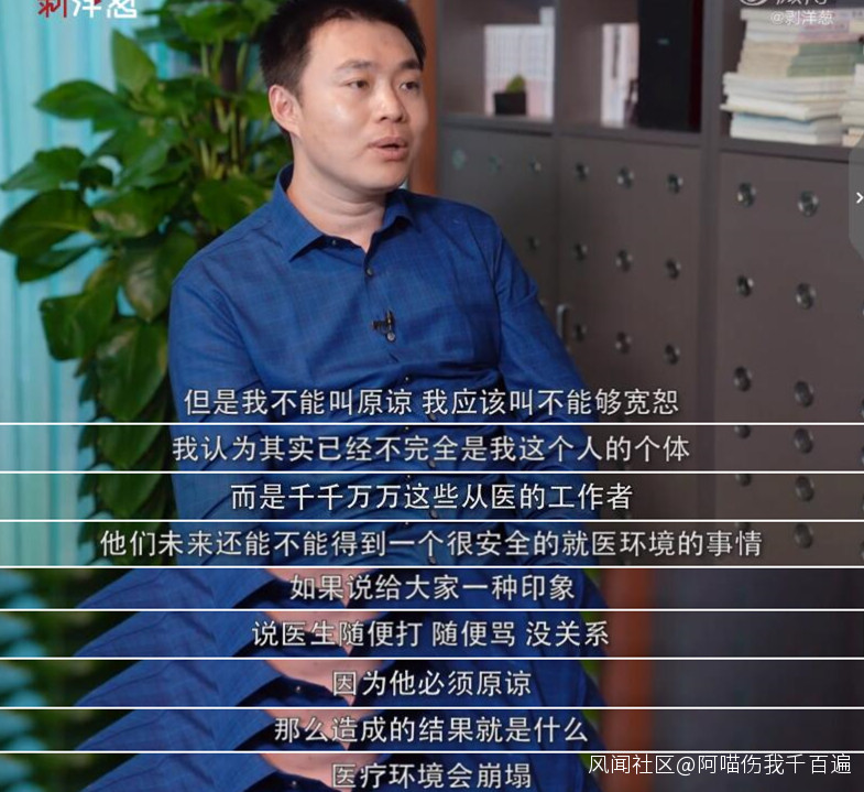 雖然他可以理解兇手,但無法寬恕,因為這已經不是他一個人的事了,他認為如果給公眾造成“隨便打罵醫生也沒關係”的印象,醫療環境將會崩塌。