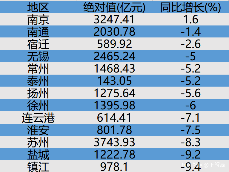 不過,據透露,今年一季度,除了南京,江蘇其他12個市無一例外都是負增長,其中,鎮江-9.4%下跌幅度最大,南通-1.4%是南京外表現最好的。