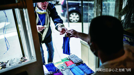 28日,在法國巴黎,一名顧客購買可水洗的口罩。 新華社/圖