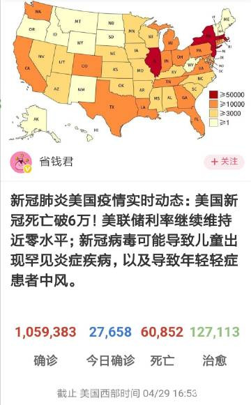 2. 美國累計105.9萬,增加2.9萬(2.3,2.7,3.0,3.2,3.4,2.7,2.9,3.0,3.4,3.5,3.3,3.0,2.8,2.6,2.6,3.1,3.2,3.1,2.7,2.7,2.9,3.1,2.9,3.3,4.2,3.6,2.7,2.3,2.6),死亡2400又上來了。
