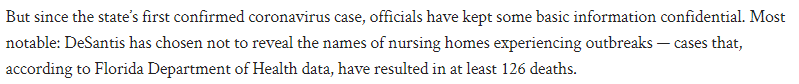 “新聞在線”直言:羅恩·德桑蒂斯(Ron DeSantis)政府不願或無法提供有關新冠疫情的關鍵信息,有時還積極地掩蓋有關疫情嚴重程度的關鍵細節,以使其不被公眾關注。
