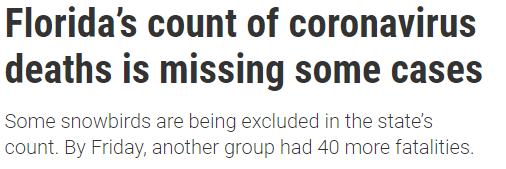 早在當地時間4月12日,《坦帕灣時報》發現,在佛州官方的統計中至少有40例死亡案例“消失不見了”,這些案例原本被登記在當地醫學檢測人員的紀錄裏。《坦帕灣時報》29日表示,從上週五的數據來看,佛州衞生部門至少瞞報了10%。