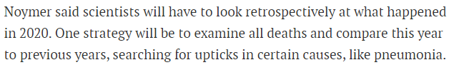 對此,加州大學歐文分校教授伊諾莫Noymer坦言,新冠肺炎是導致新冠病毒感染患者死亡的唯一原因,再加上測試不足、難以比對,幾乎全美所有地方的新冠肺炎死亡人數都被“低估”了。