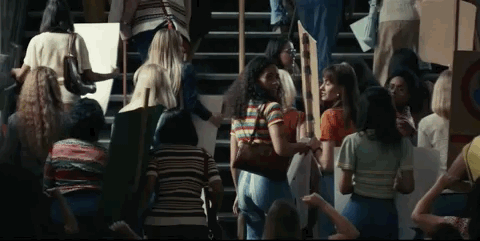 △同樣是劇裏一組意味深長的鏡頭,保守派的女性反對ERA,自由派女性支持ERA,她們舉着標語走進法院,然後互相對望。大家都是女性,究竟是什麼,讓我們分裂至此?