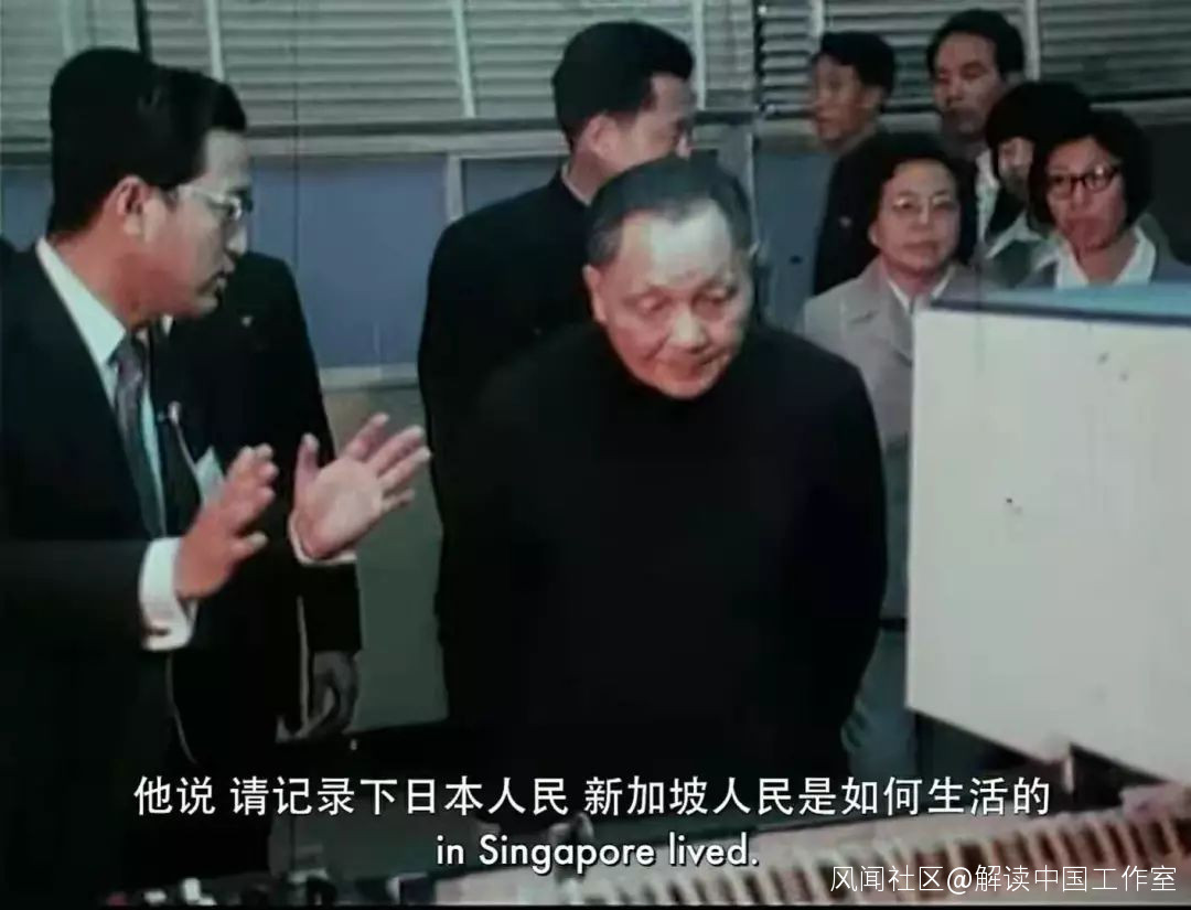 鄧小平是中國少有的接觸外界的共產黨領導人之一。他在法國勤工儉學將近6年,所以這種國際觀對他幫助很大。他向中央電視台工作人員提出了明確要求。他説,請記錄下日本人民、新加坡人民是如何生活的。在那時,這成為中國人開眼看世界的機會。當中國人在電視中看到日本工人家裏就有冰箱時,是非常震驚的。