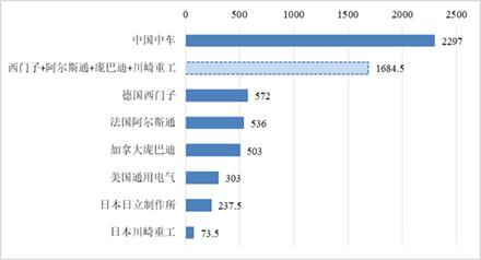 ▲ 2016年世界主要軌道交通裝備企業營業收入(單位:億元)