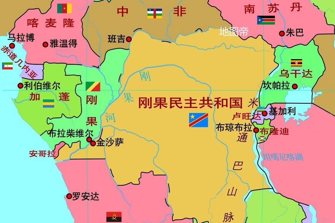 這裏有必要區分一下兩個剛果:剛果(金)和剛果(布)。剛果(布)全稱“剛果共和國”,首都布拉柴維爾;剛果(金)全稱“剛果民主共和國”,首都金沙薩。為了區分二者,就把各自首都的第一個字拿出來打上了括號。本文所説的剛果,都是指剛果(金)。